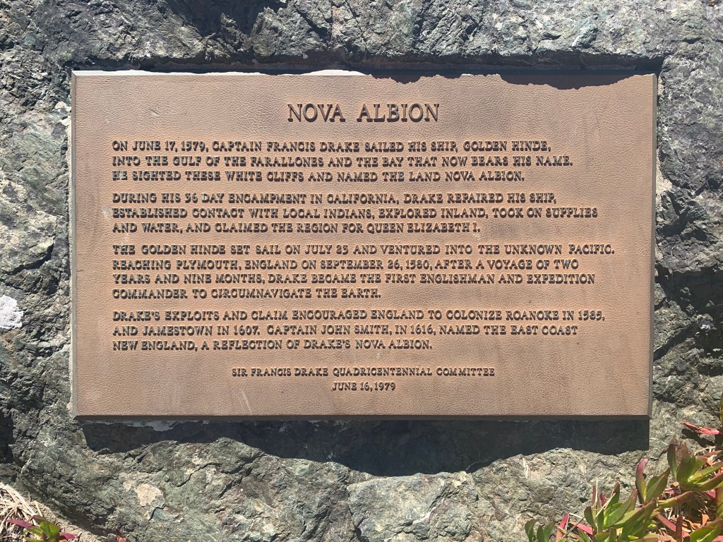 The official plaque at Point Reyes seashore describing Drake’s landing.
