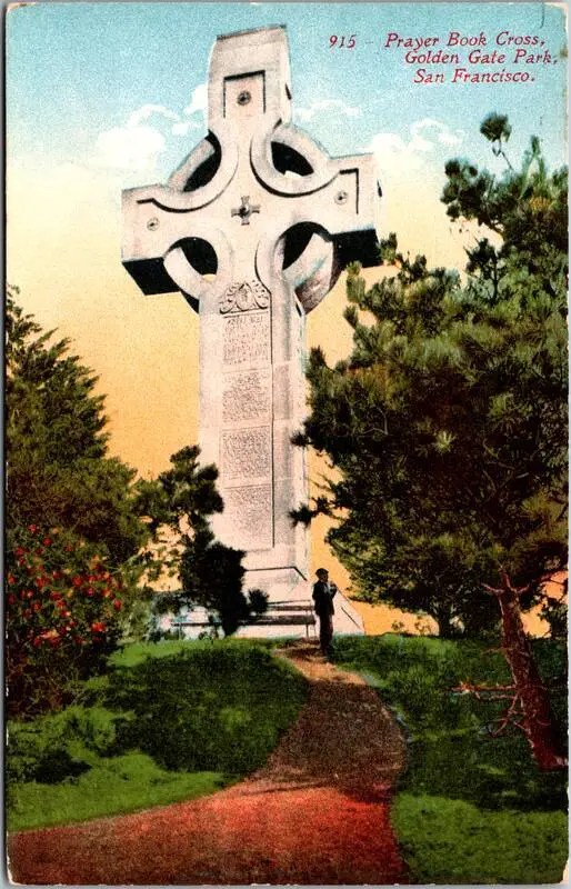 The text on the front reads, “Presented to Golden Gate Park at the opening of the Mid-Winter Fair January 1 AD 1894, as a memorial of the service held on the shore of Drakes Bay about Saint John Baptist’s Day, June 24 Anno Domini 1579 by Francis Fletcher, Priest of the Church of England, Chaplain of Sir Francis Drake, chronicler of the service.”